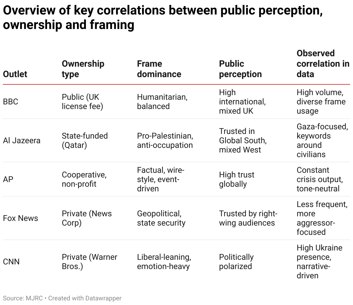 Media ownership and geopolitical alignment also matter. Outlets such as the public service broadcaster BBC, and the privately held The New York Times often aim for perceived balance, while others like Al Jazeera and RT, both state-owned, tend to reflect their respective governments’ foreign policy agendas. These editorial differences influence which crises are covered, how they are framed, and whom audiences are encouraged to empathize with.
